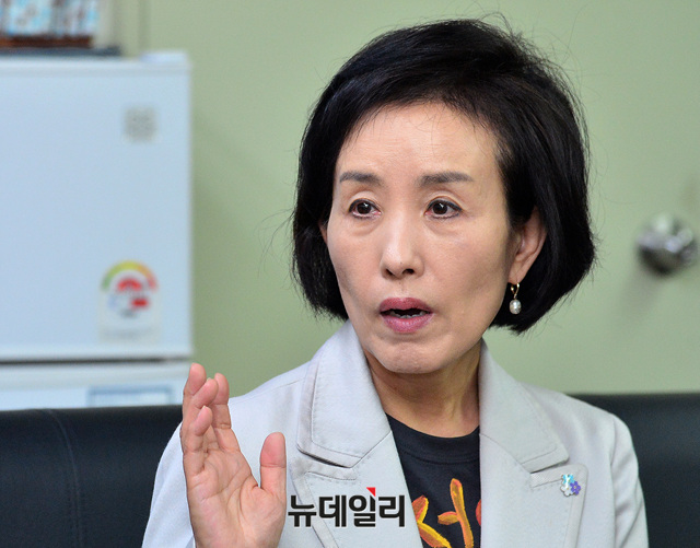 박선영 서울시교육감 후보가 5일 오전 서울 종로구 서울시교육청에서 공약 발표 기자회견에 참석해 질문에 답하고 있다.