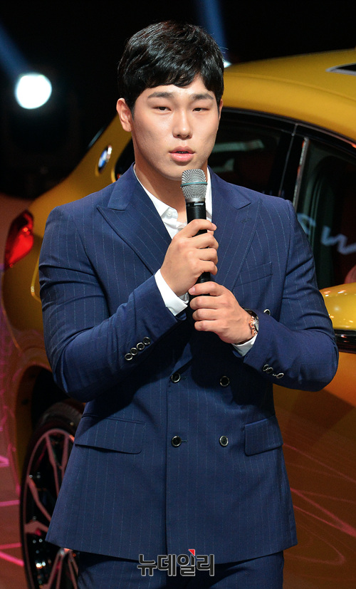 스켈레톤 금메달리스트 윤성빈 선수가 7일 오전 부산 벡스코에서 열린 '2018부산국제모터쇼(BIMOS 2018) 프레스데이 컨퍼런스' BMW 행사에 참석해 인사말을 하고 있다.2018부산국제모터쇼는 '혁신을 넘다, 미래를 보다(Beyond Innovation, Into the Future)'를 주제로 국내외 완성차 19개 브랜드를 포함해 9개국, 170여 개 완성차·부품업체가 200여 대의 신차를 선보인다. 또 국내에서는 현대·기아자동차와 한국GM, 르노삼성자동차 등 쌍용자동차를 제외한 4개 사가 참가한다. 오는 8일부터 17일까지 부산 벡스코에서 개최된다. (부산=뉴데일리 공준표 기자)