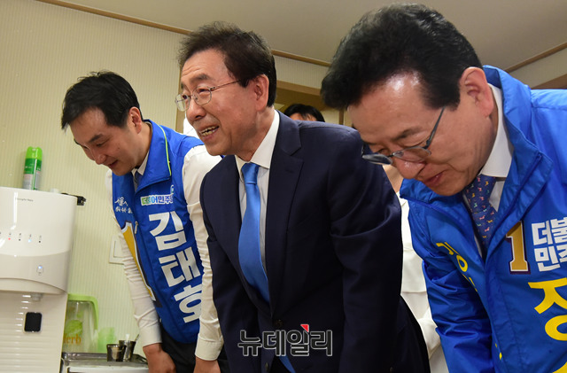 박원순 더불어민주당 서울시장 후보가 8일 오전 서울 강남 자곡로 LH강남 3단지 경로당을 찾아 어르신들에게 인사하고 있다.