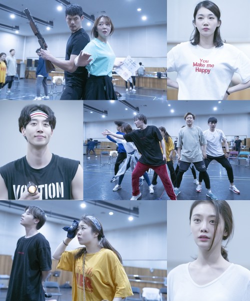 대학로의 여름을 피로 물들일 뮤지컬 '이블데드'가 연습 현장을 공개하며 개막 초읽기에 들어갔다.공개된 '이블데드' 스틸에는 B급 유머를 강조하며 웃음폭탄을 준비하고 있는 배우들의 열의에 찬 모습이 담겨있다.애쉬 역에 처음 도전하는 강정우·서경수와 두번째 시즌을 맞이하는 김대현은 온화한 매너남에서 악마의 처단자가 되는 애쉬를 저마다의 매력으로 완벽하게 소화했다.이어 우찬, 유권, 김려원, 최미소, 김히어라, 서예림, 김리, 송나영 등 배우들은 친한 친구들이자 가족이었던 모습에서 괴짜 좀비군단으로 완벽히 분하며 화려한 퍼포먼스의 좀비댄스를 보여줄 준비를 마쳤다.'이블데드' 공연장에 들어서면 축제처럼 피를 즐길 수 있다. 지난해 스플레터석을 경험한 관객이라면 올해는 피의 양이 배로 들어났다는 것을 명심해야 한다. 이번 시즌의 좀비들은 물 조리개, 붓 등 각종 도구를 사용해 관객들에게 피를 흩뿌릴 예정이다.B급 코미디 좀비 호러 뮤지컬 '이블데드'는 숲속의 오두막으로 여행을 떠난 5명의 대학생들이 우연히 악령을 풀어주면서 좀비와 대결을 벌이는 내용을 그린다.6월 12일~8월 26일 대학로 유니플렉스 1관에서 공연된다. 12~17일 비숙성기간(프리뷰) 예매 시 30%의 할인혜택과 '좀스타그램 포토카드'를 증정한다.