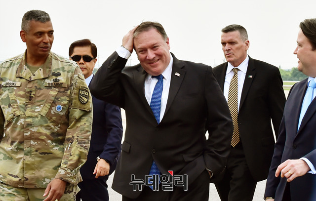 [포토] 오산 미군기지 도착한 마이크 폼페이오 美국방장관