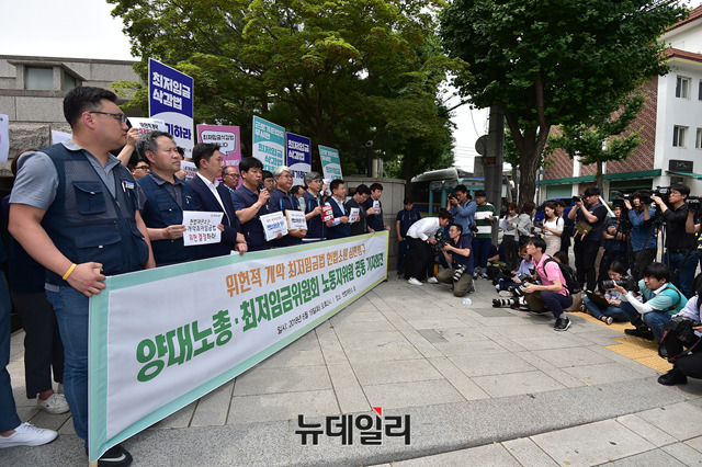 [포토] '최저임금법 위헌청구소송 기자회견' 갖는 양대 노총