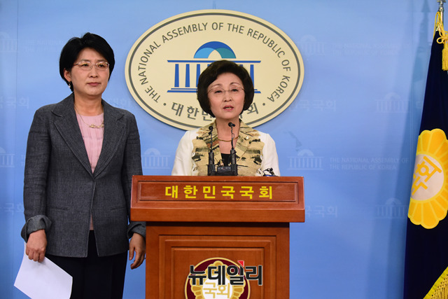 바른미래당 박주현, 장정숙 의원이 20일 오전 국회 정론관에서 바른미래당에 출당을 요구하는 기자회견을 하고 있다.