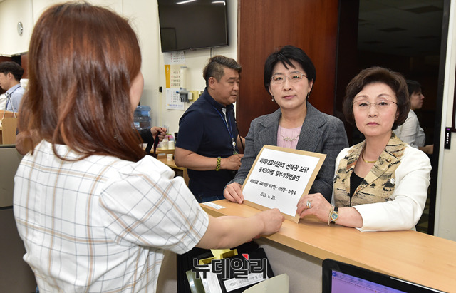 [포토] 선거법 일부개정법률안을 제출하는 장정숙-박주현