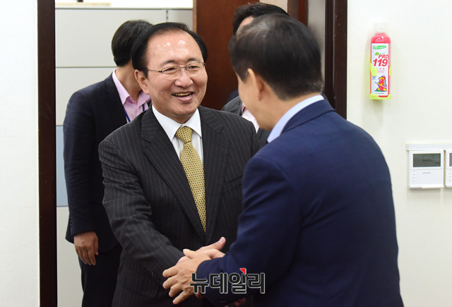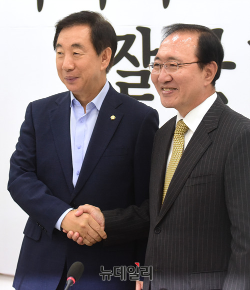 [포토] 인사 나누는 김성태-노회찬