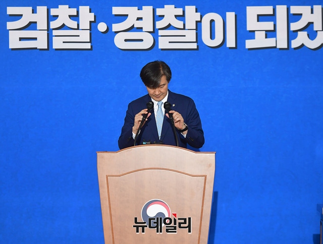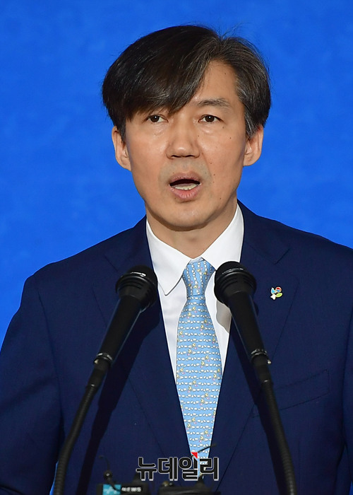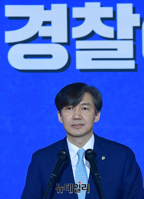 조국 청와대 민정수석 비서관(왼쪽부터)가 21일 오전 서울 종로구 정부서울청사 별관 국제회의장에서 '검·경 수사권 조정 합의문'에 앞서 합의안 마련 진행 경과를 밝히고 있다.