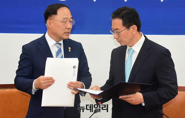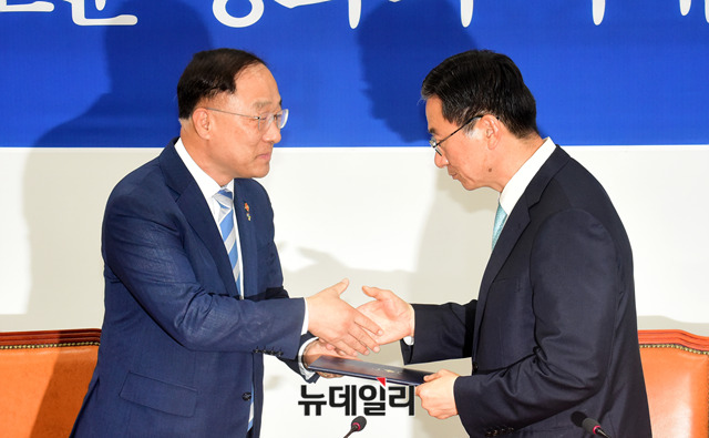 [포토] 검경수사권 합의문 전달 하는 홍남기 국무조정실장
