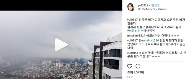 최율은 지난 20일 인스타그램에 비가 내리는 하늘 풍경을 찍은 동영상을 올린 뒤 "멀리서 하늘 구경 하다보니 막 소리치고 싶네. #임금님 귀는 당나귀 귀"라는 멘션을 달았다.
