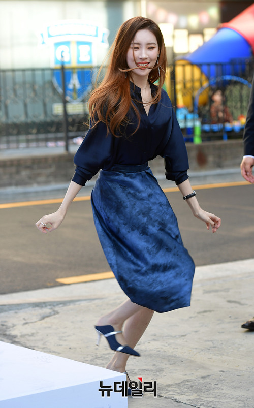 가수 선미가 21일 오후 서울 강남구 아카디움에서 열린 몽블랑 스타 레거시 컬렉션 런칭 행사에 참석해 포토타임 직후 이동하고 있다.
