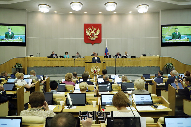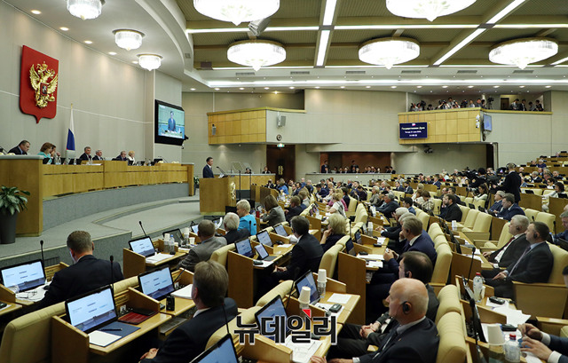 [포토] 러시아 연방 하원의회서 연설하는 문재인 대통령