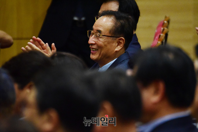장세용 구미시장 당선인이 22일 오후 국회에서 열린 더불어민주당 6.13 지방선거 기초단체장 당선자 대회에 참석해 서영교 의원과 사진을 찍고 있다.