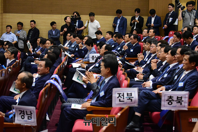 더불어민주당 6.13 지방선거 기초단체장 당선자들이 22일 오후 국회에서 열린 당선자 대회에 참석해 앉아 있다.