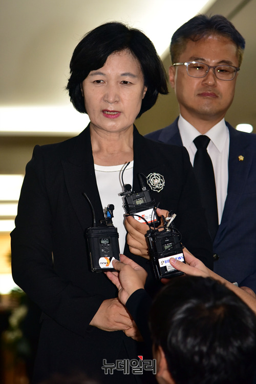 [포토] 기자들의 질문에 답하는 추미애 대표