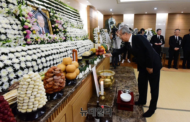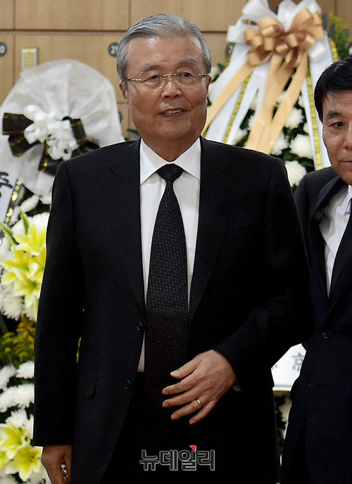 김종인 전 더불어민주당 대표가 23일 오후 별세한 김종필 전 국무총리의 빈소가 마련된 서울 송파구 서울아산병원 장례식장에서 조문을 하고 있다.