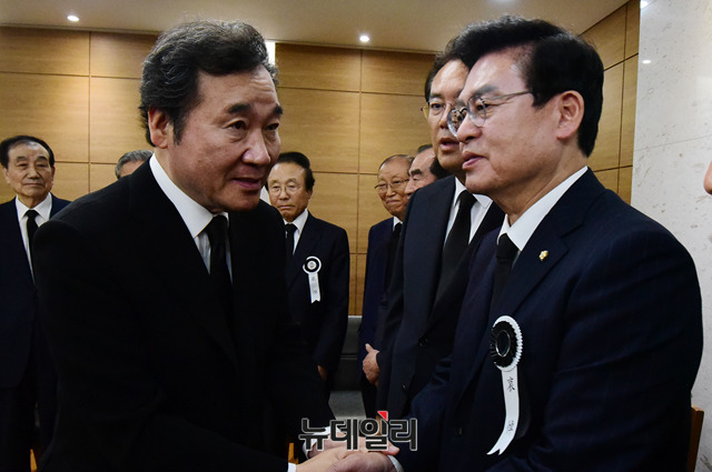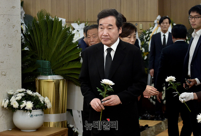 이낙연 국무총리가 23일 오후 별세한 김종필 전 국무총리의 빈소가 마련된 서울 송파구 서울아산병원 장례식장에서 조문을 하고 있다.