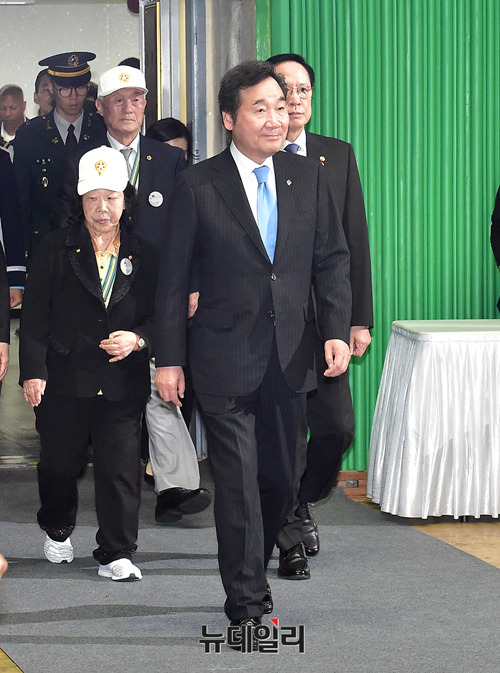 이낙연 국무총리가 25일 오전 서울 송파구 잠실실내체육관에서 열린 제68주년 6.25전쟁 기념식에 참석하기 위해 입장하고 있다.