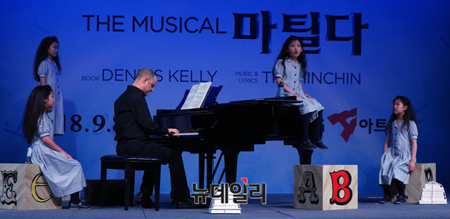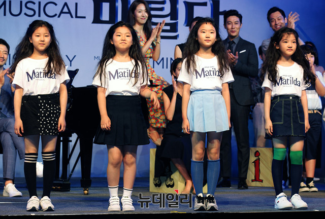 아역배우 황혜영, 안소명, 이지나, 설가은(왼쪽부터)이 25일 오전 서울 중구 더 플라자 그랜드볼룸에서 열린 뮤지컬 '마틸다' 제작발표회에 참석해 포즈를 취하고 있다.뮤지컬 마틸다는 영국의 명문극단 로열 셰익스피어 컴퍼니가 '레미제라블' 이후 25년만에 새롭게 탄생시킨 뮤지컬이다. 이번 한국에서 아시아 최초로 공연되는 마틸다는 뮤지컬 '빌리 엘리어트' 출신 아역배우들이 대거 출연하는 점이 특징이다. 오는 9월 8일부터 내년 2월 10일까지 LG아트센터에서 공연된다.