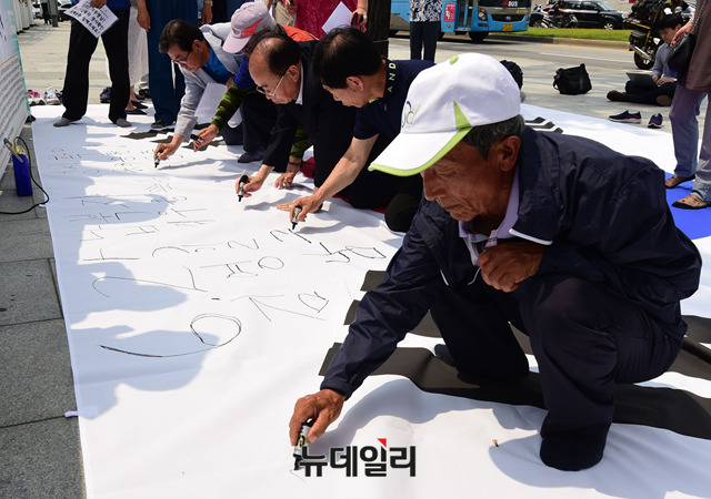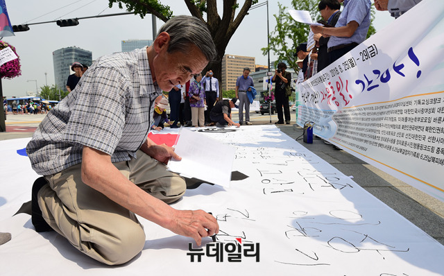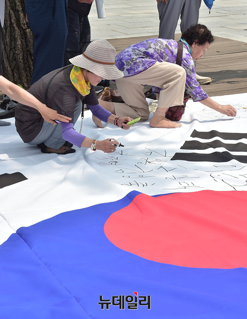 [포토] 태극기에 납북가족 이름 적는 남북자가족들