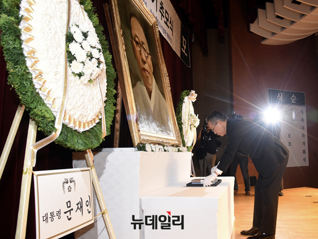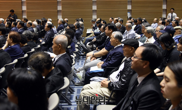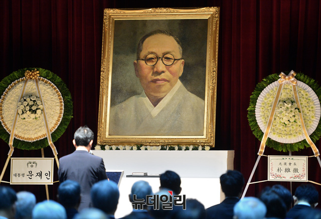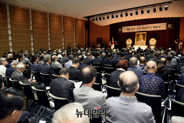 김구의 서거 69주기 추모식이 26일 오전 서울 용산구 백범김구기념관에서 열렸다. 이날 추모식에는 정세균 전 국회의장, 손학규 바른미래당 전 상임선거대책위원장, 유가족 등이 참석했다.