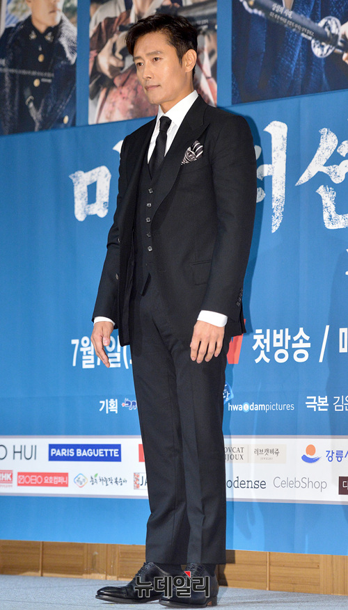 배우 이병헌이 26일 오후 서울 강남구 파티오나인에서 열린 드라마 '미스터션샤인 제작발표회에 참석해 포즈를 취하고 있다. 이병헌은 노비출신 미국 해병대 장교 유진 초이 역을 맡았다.