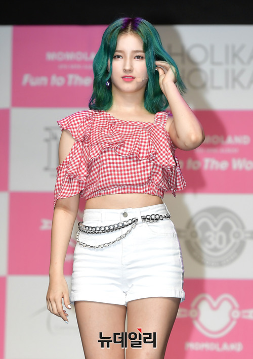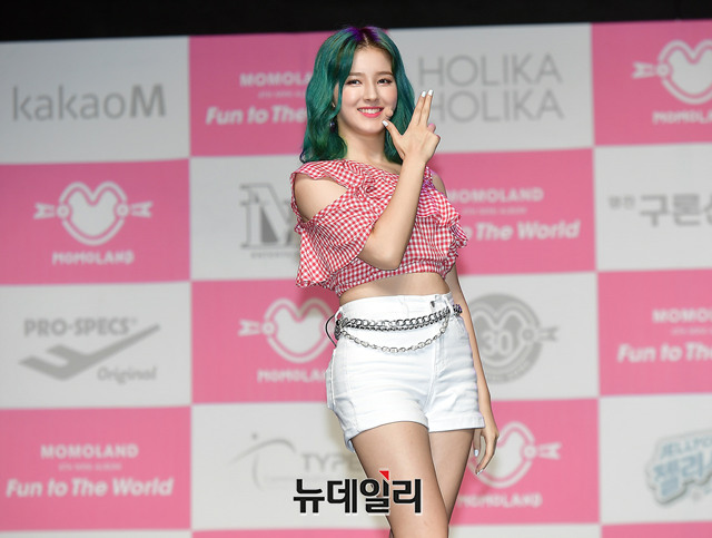 걸그룹 모모랜드 낸시가 26일 오후 서울 용산구 블루스퀘어에서 새 미니앨범 'Fun to The World(펀 투 더 월드)' 쇼케이스 무대에 앞서 포토타임을 갖고 있다.