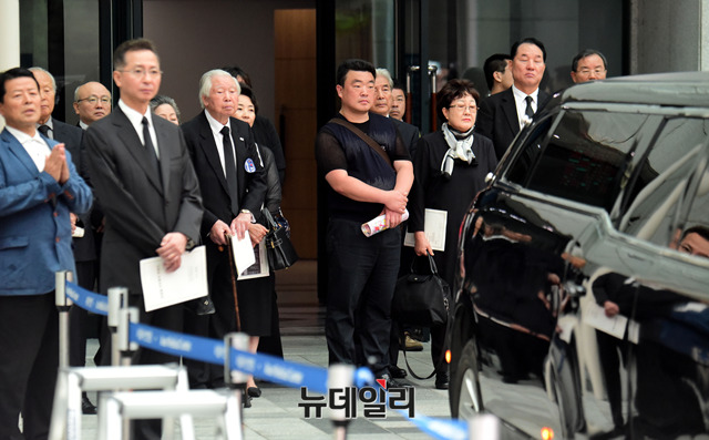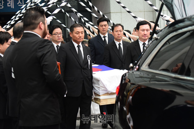 향년 92세로 별세한 고(故) 김종필 전 국무총리의 발인이 27일 오전 서울 송파구 서울아산병원 장례식장에서 진행되고 있다.