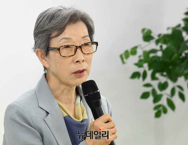 김길자 대한민국사랑회 이사가 30일 오후 서울 중구 이승만학당에서 열린 개소식에 참석해 축사를 하고 있다.이날 행사에는 이승만학당의 교장을 맡은 이영훈 전 서울대 교수, 이승만 전 대통령 양자 이인수 박사, 인보길 뉴데일리 회장, 안병훈 기파랑 대표, 정규재 펜앤마이크 대표 등이 참석했다.'이승만학당'은 건국 대통령 이승만의 자유민주주의 이념을 기억하고, 배우기 위해 만든 학당이다. 학생들은 이승만 대통령의 대한민국 건국 과정과 의의를 배운다. 4기에 걸쳐 130여명이 강의를 듣고 수료했다. 현재 5기 과정이 진행 중이다.