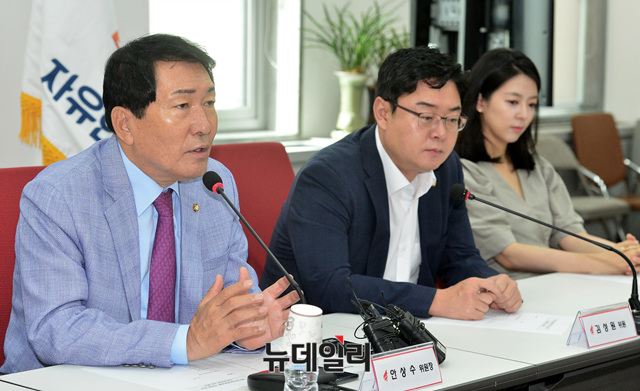 안상수 자유한국당 혁신 비상대책위원회 준비위원장이 3일 오전 국회에서 열린 혁신 비상대책위원회 구성을 위한 준비위원회 3차 회의에 참석해 모두발언 하고 있다.