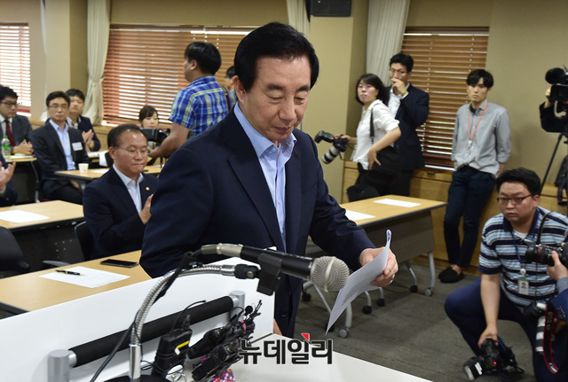 김성태 자유한국당 대표 권한대행 겸 원내대표가 3일 오전 경기도 고양시 동양인재개발원에서 열린 '2018 하반기 국회대비 정책 혁신 정책위 워크숍'에 참석, 모두발언에 앞서 인사를 하고 있다. (경기 고양=뉴데일리 이종현 기자)