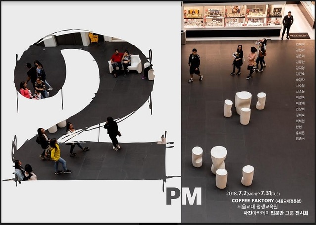 포스터를 꽉 채운 숫자 2를 보고 다가서자 옆에 pm이 붙어있다. 오후 2시!사진전시회 타이틀이 왜 ‘오후 2시’일까. 지하 전시실로 내려가니 출품자들이 가득 모였다. 기성작가들을 포함한 출품작가들은 대부분 50대 전후 남녀들, 개막준비에 설레는 분위기다.“내 인생의 오후2시라 할까요. 100세시대로 친다면 50대는 삶의 정점에서 내리막길로 막 접어든 길, 24시간중 오후2시쯤인 듯 싶었습니다.” 지도교수 임종국(46, 신구대학) 교수는 그래서 ‘오후2시’를 교육 주제로 삼아 작품을 만들고 전시회까지 열었다고 설명한다.“그동안 대학생들만 지도하다가 처음 50대 중년 수강생들을 만나고보니 그 세대 틈새가 예상보다 넓었다”고 한다. 20대 SNS세대와 달리 디지털 기능교육을 기초부터 되풀이해야하는 과정은 그렇다 치고, 자기신념이 확고한 ‘윗세대의 벽’ 앞에서 한동안 눈높이를 맞추려 고심하던 임교수는 오히려 그 ‘자기색깔’을 작품으로 녹여내도록 수많은 부교재들을 제공, 작가의 세계로 이끌수 있었던 시간들이 ‘행복했다’며 웃는다.