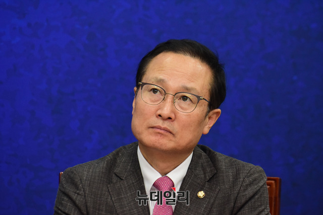 홍영표 더불어민주당 원내대표가 4일 오전 국회 당 대회의실에서 열린 최고위원회의에서 생각에 잠겨있다.