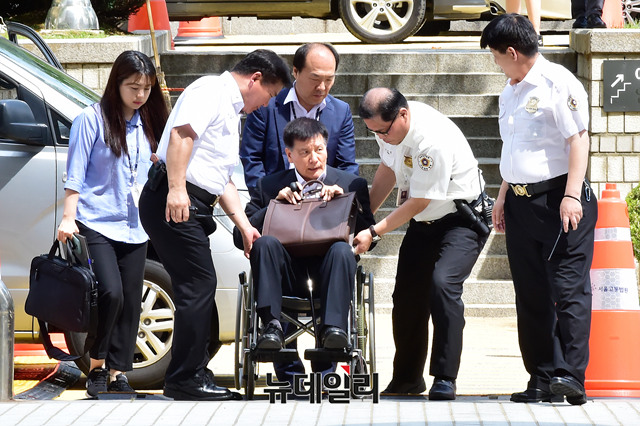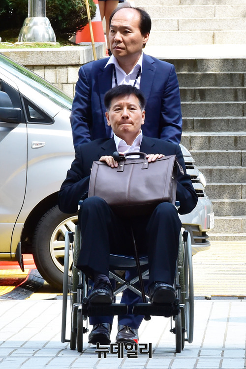 이채필 전 고용노동부 장관이 4일 오전 서울중앙지방법원으로 영장실질심사를 받기 위해 입장하고 있다. 이 전 장관은 노조분열공작 혐의를 받고 있다.