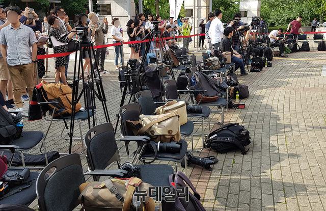 어리둥절한 가운데 포토월이 설치됐다는 밖으로 나간 기자들은 또 한 번 분통을 터뜨리고 말았다. 갑작스레 장소를 변경한 탓인지 취재진을 위한 변변한 의자마저 마련되지 않았던 것.