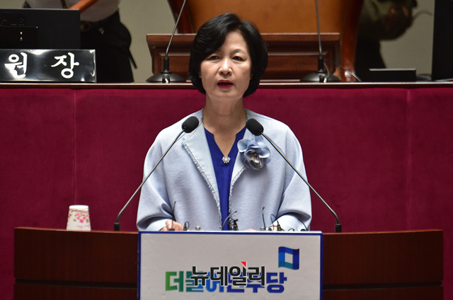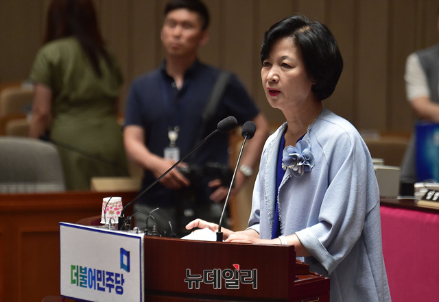 추미애 더불어민주당 대표가 5일 오전 국회에서 열린 의원총회에서 모두발언을 하고 있다.