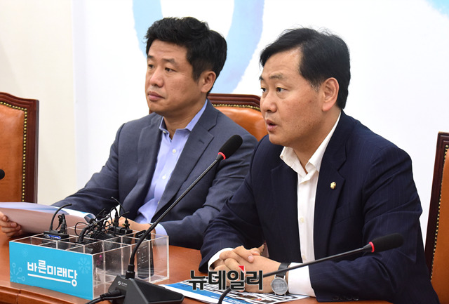 김관영 바른미래당 원내대표가 5일 오후 국회 당 원내대표실에서 '바른미래가 생각하는 최저임금과 근로시간 단축의 올바른 방향'을 주제로 위클리 정책브리핑을 하고 있다.