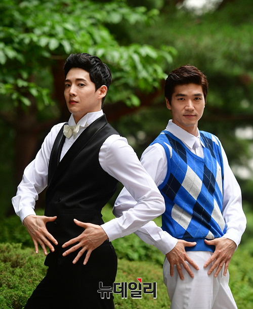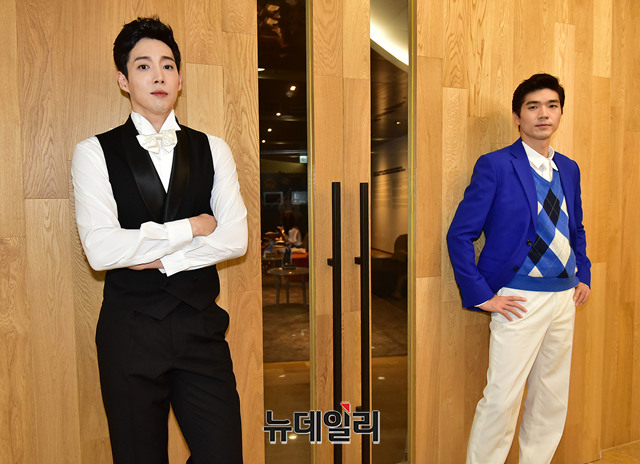 뮤지컬 배우 정민(왼쪽부터)이 5일 오후 서울 서초구 예술의전당에서 열린 뮤지컬 '브로드웨이 42번가' 프레스콜 직후 포토월 앞에서 배우 정민의 기념사진을 찍어주고 있다.배우 강동호와 정민은 극 중에서 '프리티 레이디'의 남자 주인공이자 유쾌한 성격의 '빌리 로러(Billy Lawlor)' 역을 맡았다.1996년 국내 초연된 '브로드웨이 42번가'는 1930년대 대공황기 브로드웨이를 배경으로 무명 코러스걸 페기소여가 뮤지컬 스타로 탄생하는 이야기를 그리고 있다. 오는 8월 19일까지 예술의전당 CJ토월극장에서 공연된다.