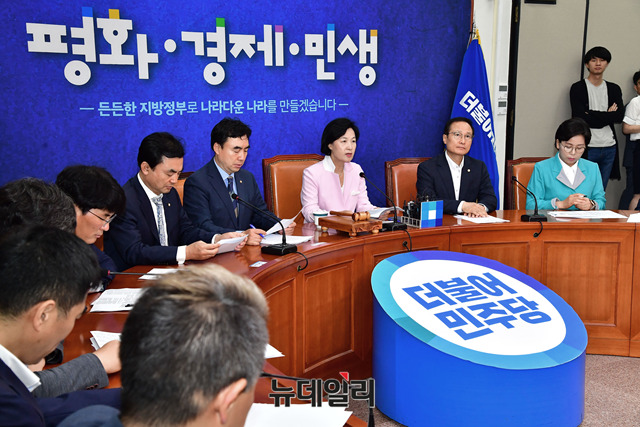 추미애 더불어민주당 대표가 6일 오전 국회에서 열린 최고위원회의에서 모두발언을 하고 있다.