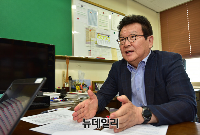 성풍현 카이스트(KAIST·한국과학기술원) 원자력 및 양자공학과 교수가 지난 4일 오후 대전 유성구 카이스트 기계공학동 교수사무실에서 최근 카이스트 학생들의 원자력 전공(원자력 및 양자공학과) 선택이 눈에 띄게 준것과 관련해 인터뷰를 갖고 있다. (대전=뉴데일리 정상윤 기자)