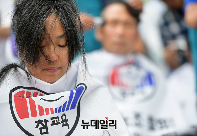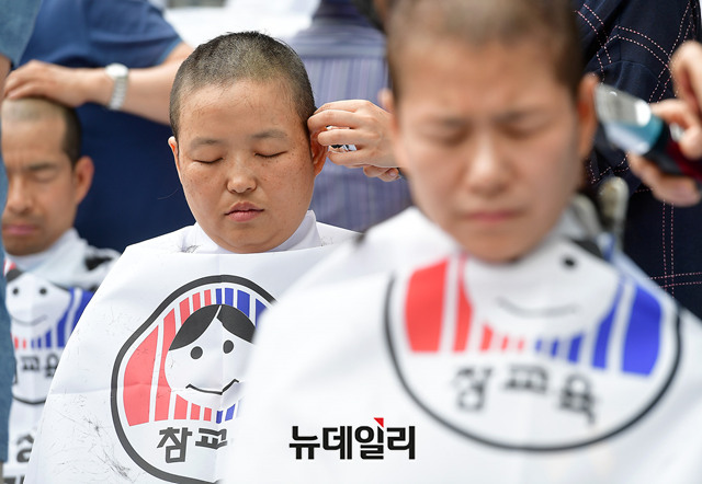 [포토] 전교조, 법외노조 철회 주장하며 교사 40명 삭발