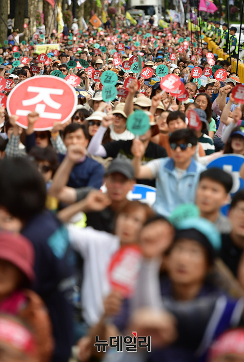 앞서 전교조는 이날 서울파이낸스 빌딩 앞에서 모여 '법외노초 철회'와 '노동3권 쟁취'를 주장하며 청와대 앞까지 가두행진 했다.