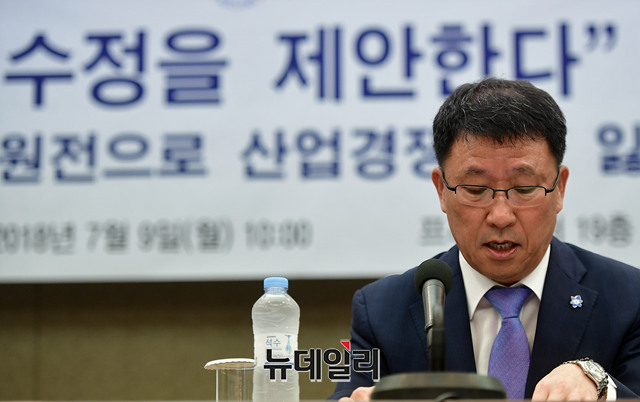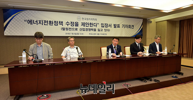 김학로 한국원자력학회장이 9일 오전 서울 중구 한국프레스센터에서 기자회견을 열고 '에너지전환정책 수정 제안'을 정부와 정치권에 요구하고 있다.