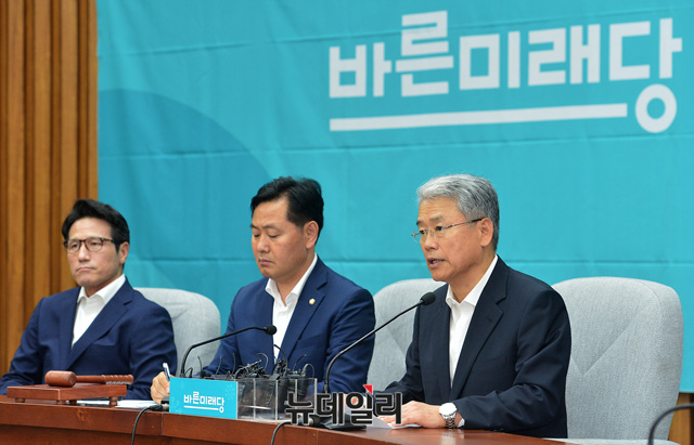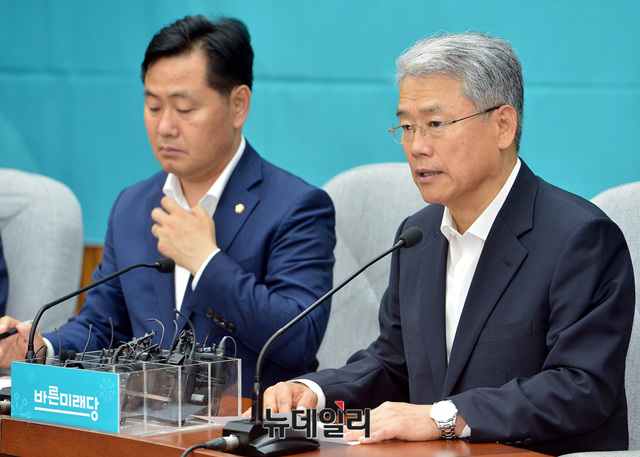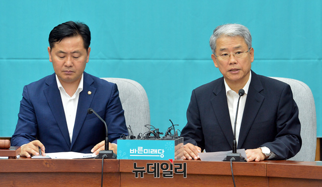 김동철 바른미래당 비상대책위원장이 9일 오후 국회에서 열린 의원총회에 참석해 모두발언 하고 있다.