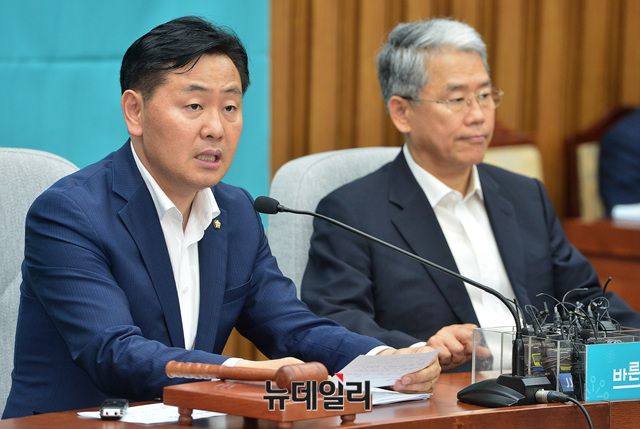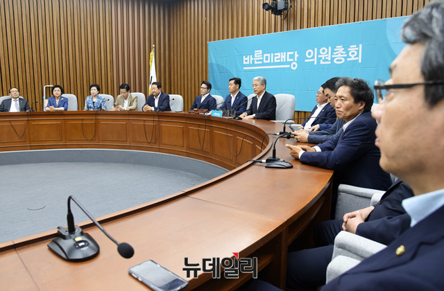 김관영 바른미래당 원내대표가 9일 오후 국회에서 열린 의원총회에 참석해 모두발언 하고 있다.