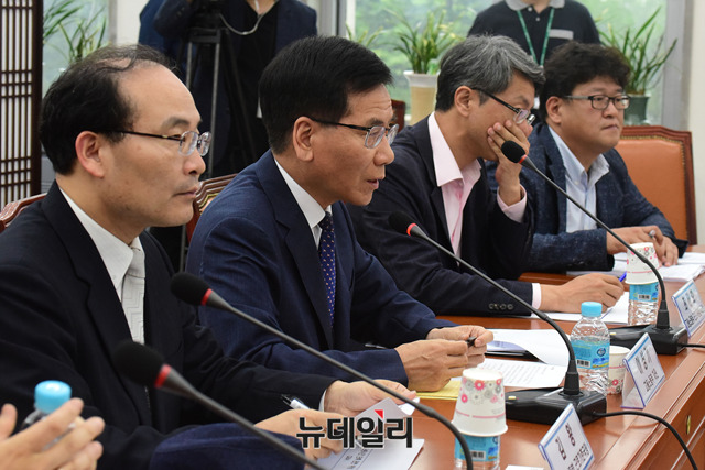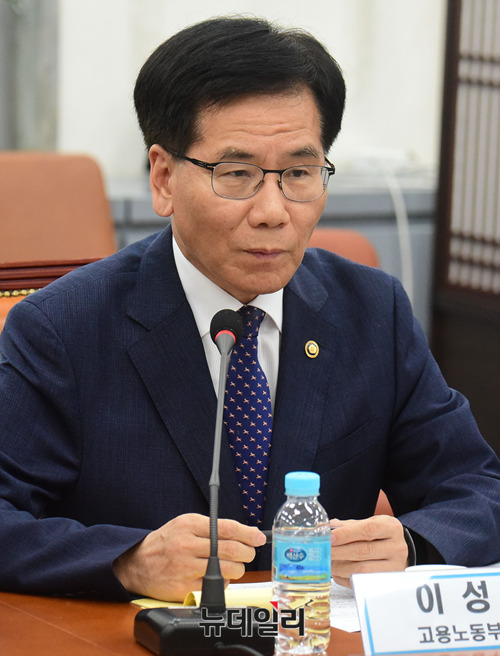 이성기 고용노동부 차관이 9일 오후 국회 본청에서 열린 바른미래당 '근로시간 단축 관련 현황 및 보완 대책 점검' 회의에서 인사말을 하고 있다.