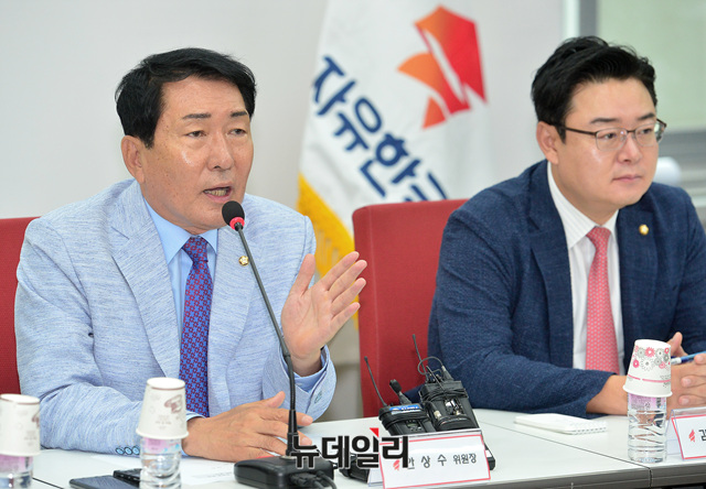 안상수 자유한국당 혁신 비상대책위원회 준비위원장이 10일 오전 국회에서 열린 혁신 비상대책위원회 구성을 위한 준비위원회 4차 회의에 참석해 모두발언 하고 있다.