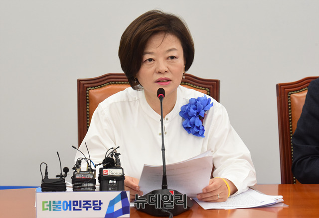 진선미 더불어민주당 원내수석부대표가 10일 오전 국회에서 열린 원내대책회의에서 모두발언을 하고 있다.