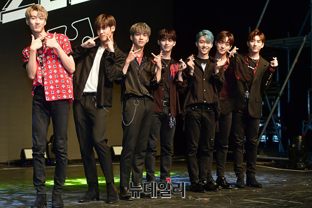 7인조 아이돌그룹 마이틴이 10일 오후 서울 강남구 일지아트홀에서 열린 2번째 미니앨범 'F;UZZLE(퍼즐)' 쇼케이스에 앞서 포토타임을 갖고 있다.