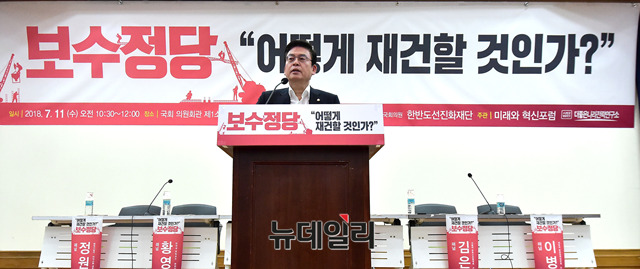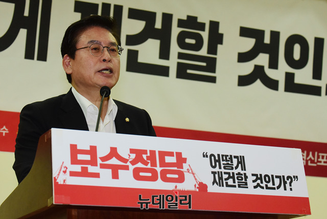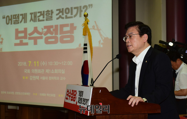 정우택 자유한국당 의원이 11일 오전 국회 의원회관에서 열린 '보수정당, 어떻게 재건할 것인가?' 토론회에서 인사말을 하고 있다.