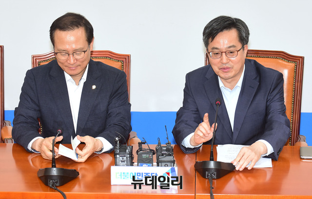 김동연 경제부총리 겸 기획재정부 장관이 12일 오전 국회를 찾아 홍영표 더불어민주당 원내대표를 만나 발언하고 있다.