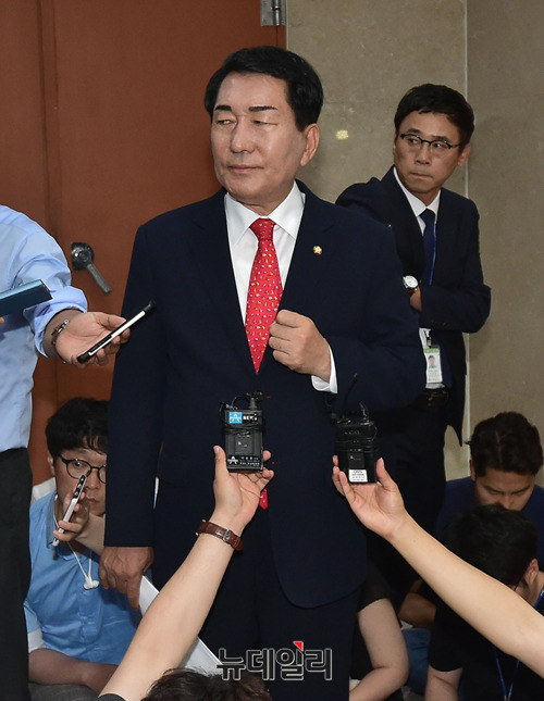 [포토] 기자들의 질문에 답하는 안상수 준비위원장